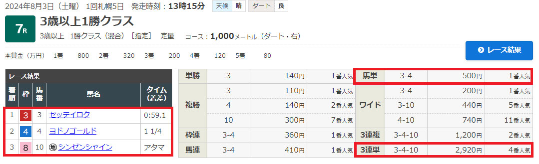 まずは8月3日(土)に公開された買い目から見ていきたいと思います。