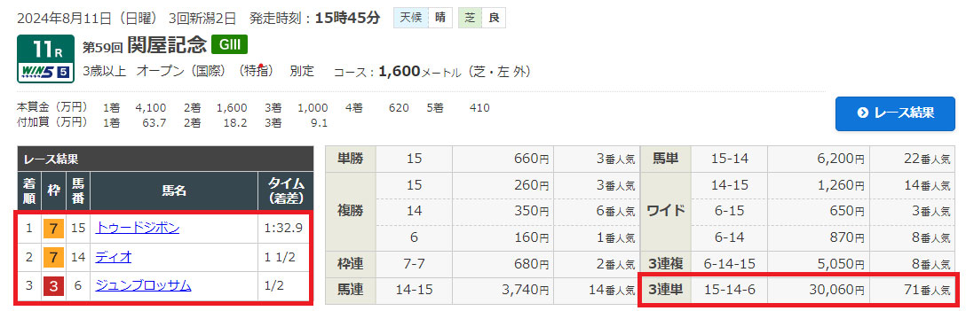 新潟競馬場の11R関屋記念(G3)の予想になります。