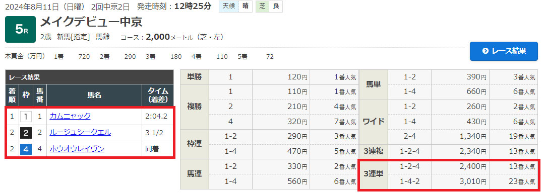 フルゲートのレースなので自分で予想するのは難しいのでこういうレースを当てられたらすごいなと思います。