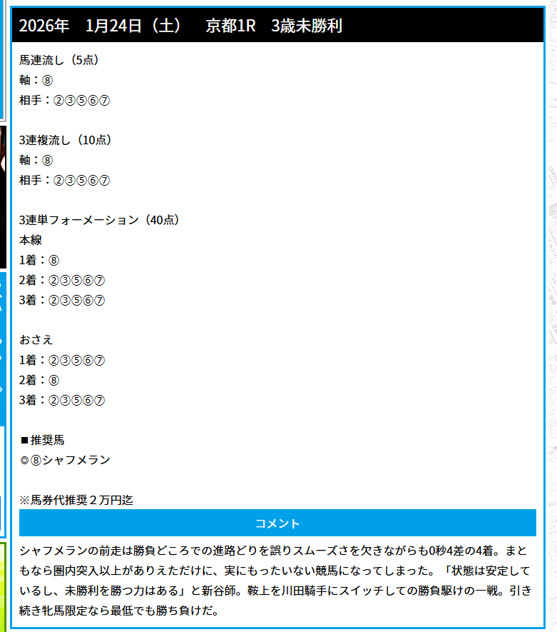 【優良】阿部辰巳至極の競馬予想へのクチコミ