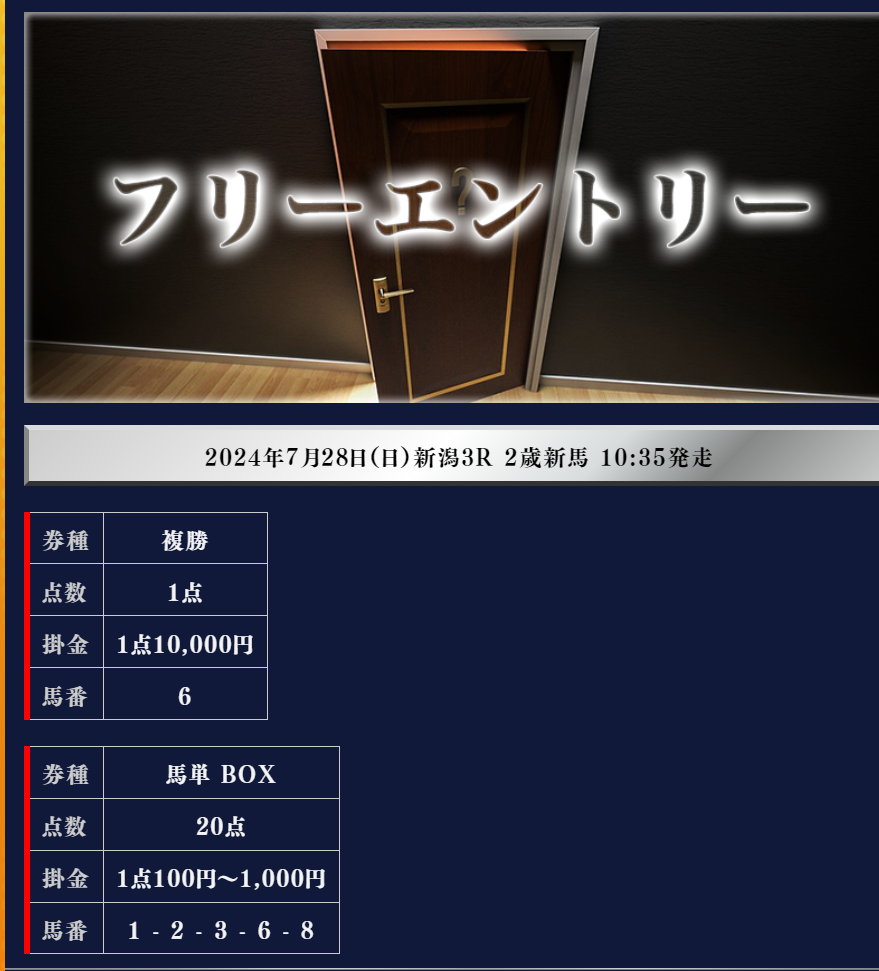 ここは無料も当たりません 的中実績も捏造している悪徳サイトです 退会を強く勧めます 元会員より