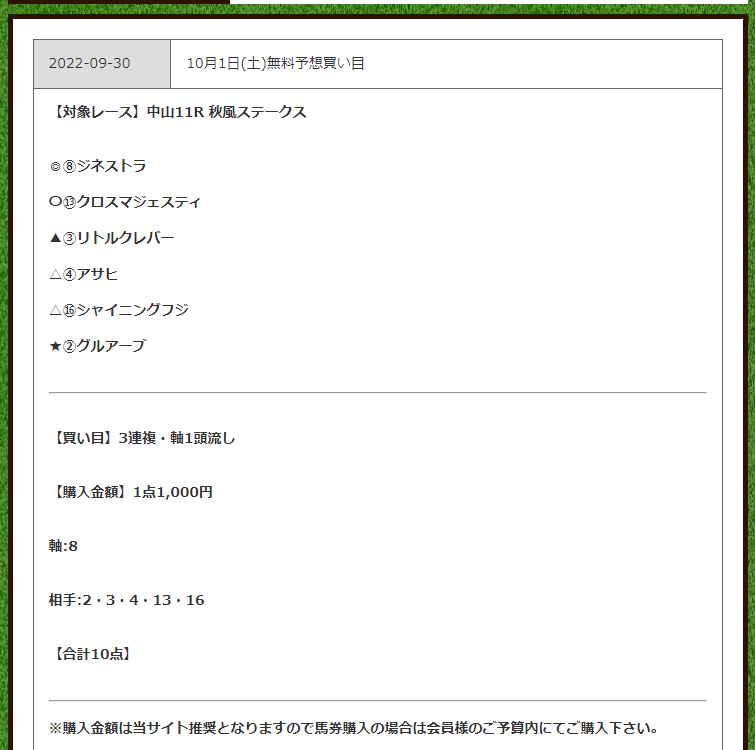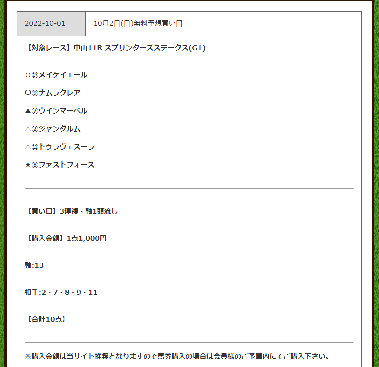 初めてこちらのサイトを参考にさせてもらいましたが、リピートはないですかね。 予算だった10万円がパーになりました。。無料予想はこんなものなのでしょうか❓