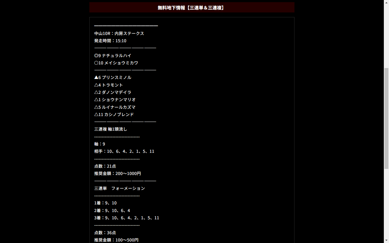 少点数買い目のご提供!