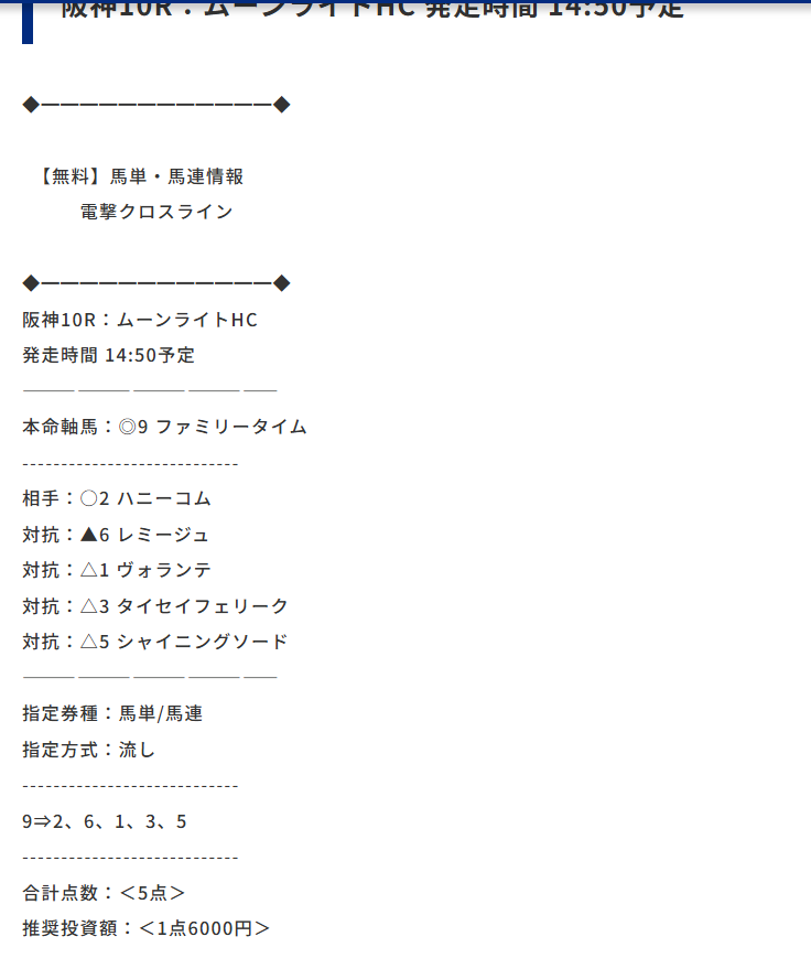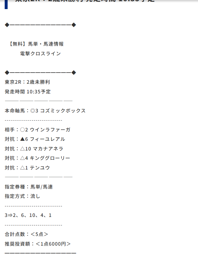 約束された万馬券の買い目が届く!