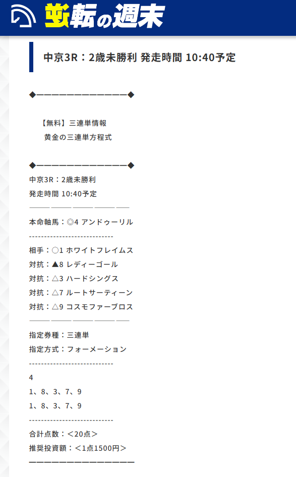 逆転の週末の無料情報は新潟2歳Sのほかにこちらも当たっていましたよ~