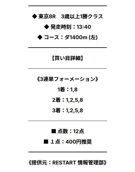 少点数買い目のご提供!