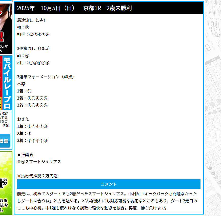 少点数買い目のご提供!