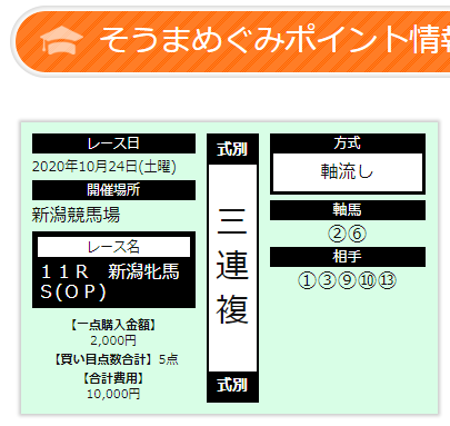 そうま先生のポイント情報で4万2千円の的中貰えました!